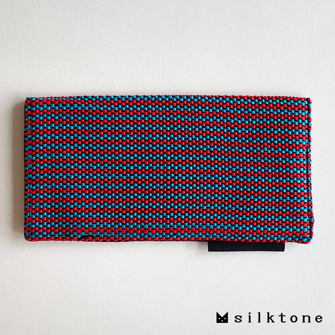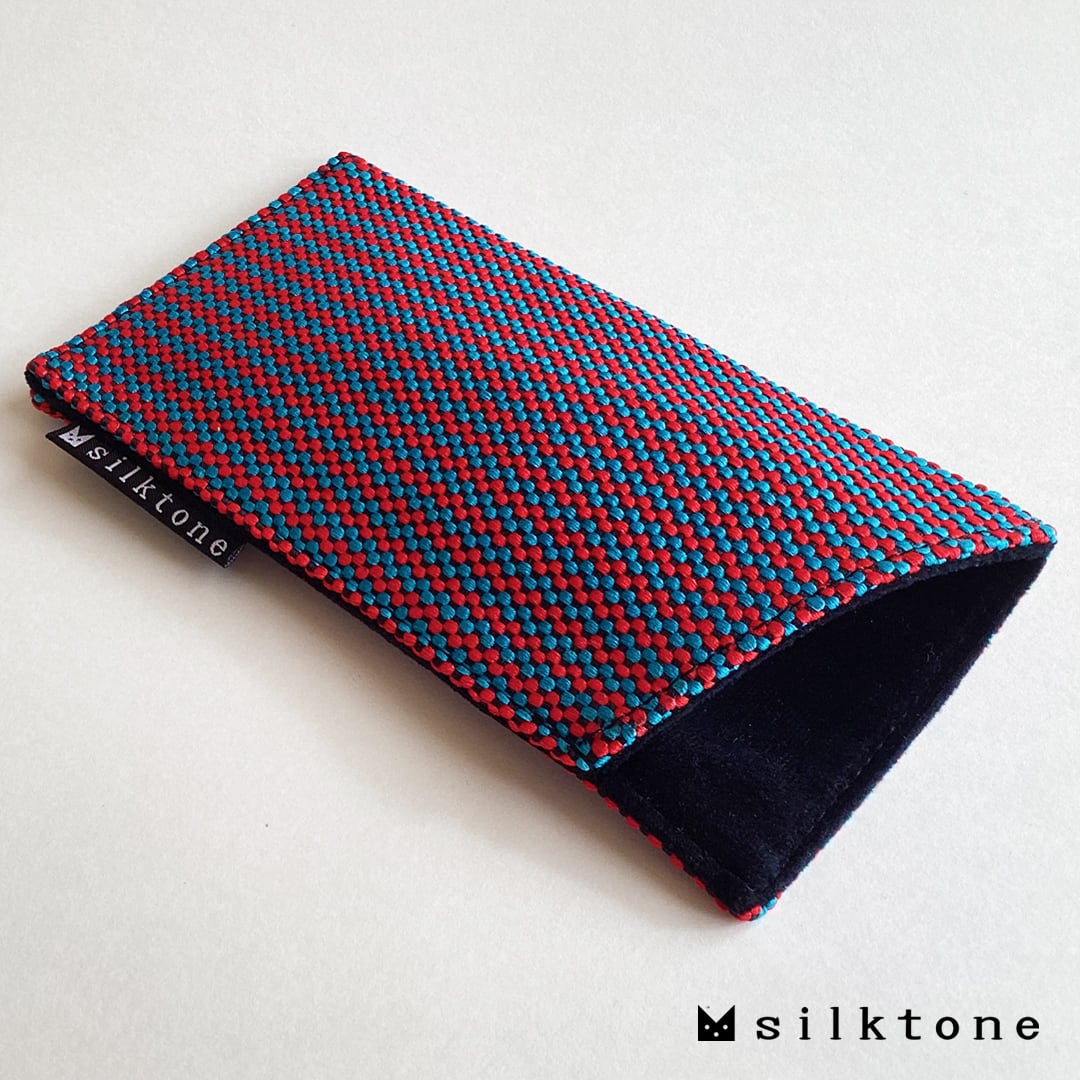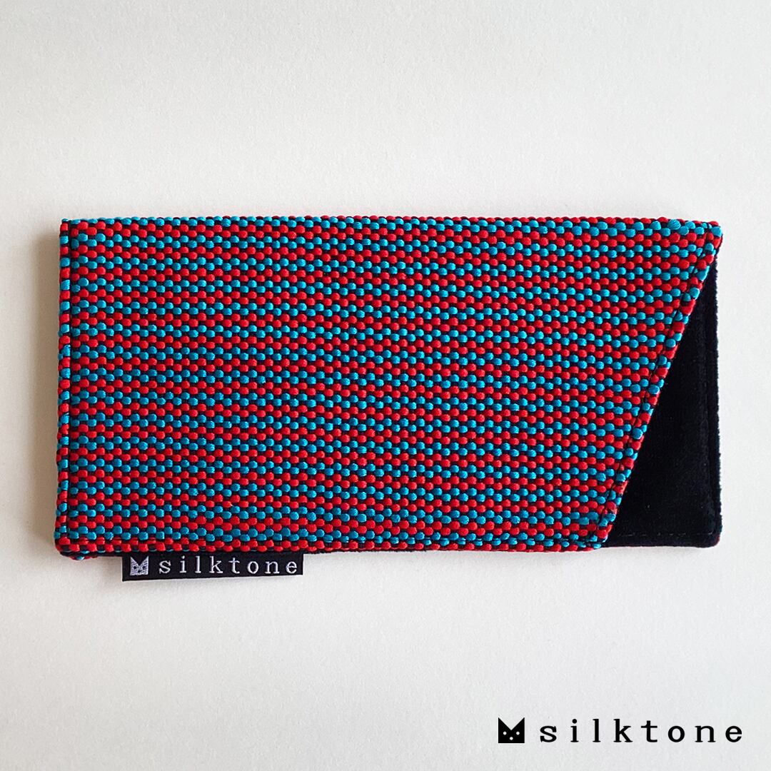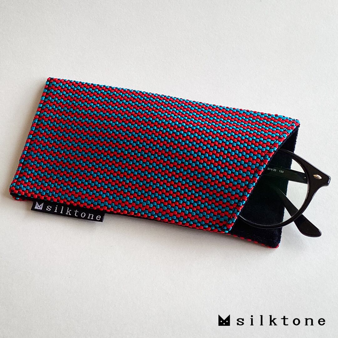 表地は手織りの絹織物『きぬどうばる』、裏地はメガネを優しく保護するベルベット生地(ポリエステル)を使っています。